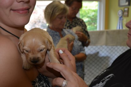 Going Home - August 15. This afternoon, the new owners arrived for the puppy seminar and to take the new family members home. Here is what happened.