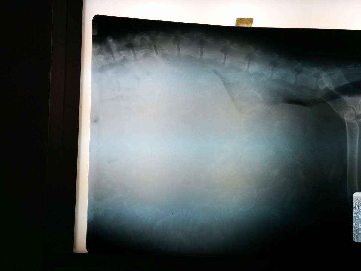 Enlargement of Mara's x-ray showing many puppy skeletons.