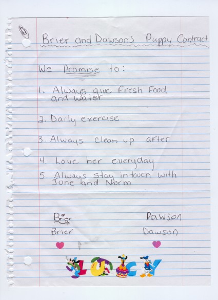 Lucy. It was signed after the new puppy seminar in front of witnesses.
