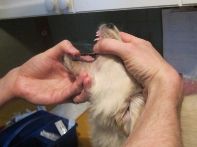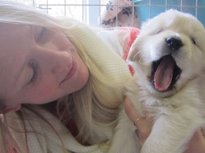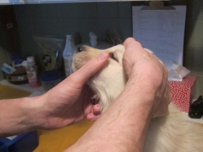 Update - March 31. The pups began the de-worming process today. They were not impressed. They were much happier with Geneva's visit and with feeding time.