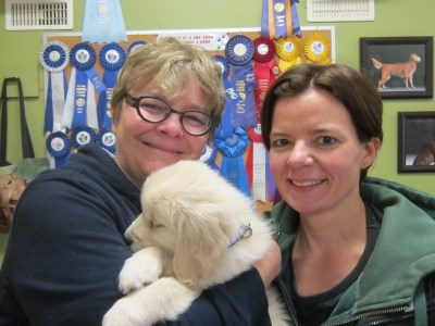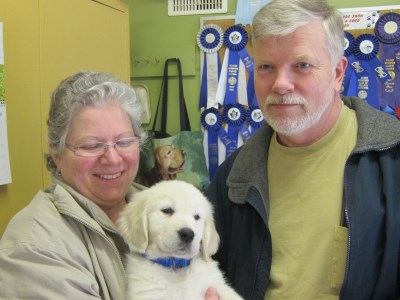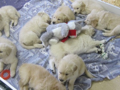 Eight weeks old - going home. After weeks of waiting, the day to take them home has arrived. The pups have been weaned, vet-checked, vaccinated, micro-chipped, socialized and selected by their new owners. They are completely ready for the next big adventure. It is a bitter-sweet time for us as we always enjoy our time with each group but we know that all the pups are going to people who will give them the love and care they deserve. Our thanks to yet another group of great owners. We have enjoyed meeting and getting to know them and we thank them for choosing Setherwood Goldens.