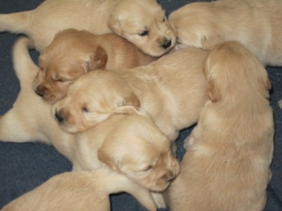 Seven weeks old - ready to leave. This was a busy week for the pups. They received their first vet check and vaccinations, finished the deworming process, were microchipped and selected by their new owners. And now, after what seemed like a very long wait, the pick-up day arrived and the new owners came to attend the new puppy seminar, have their pictures taken and then take their new family members home. We enjoyed meeting each of you and look forward to hearing from you as your pups grow. And thank you for choosing Setherwood Golden Retrievers.