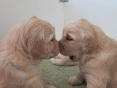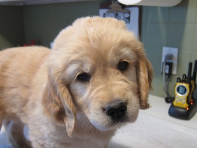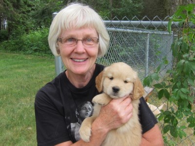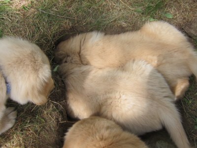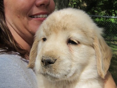 Eight weeks old - Going Home. The time has finally come. The pups have been weaned, de-wormed, vet-checked, vaccinated, microchipped, socialized and chosen by their new owners. They are now ready to begin their lives in new homes. It is a happy - and a bit scary - time for pups and owners and a bitter-sweet time for us. It was a pleasure for us to meet another group of great people. We know that they will give these pups the love and attention they need. We thank them for choosing Setherwood Golden Retrievers. Here are pictures taken as the pups leave us.