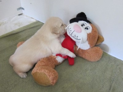 Watch them grow. Each week, we will post a picture of the same pup with Reginald to show how the pups are growing.