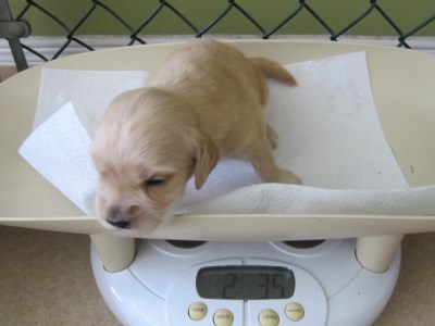 Mr Hulk - then and now. We are very pleased with Mr. Hulk's development - from a birth weight of 4.5 ounces to a fully developed, normal puppy at 7 weeks of age. He will be leaving us on August 2 to start his life with his new owners. Great job Mr. H!