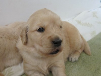 One week old Sophie had done a great job with her pups in their first week. She is attentive and has a lot of milk so the pups are growing well. Mr. Hulk is also growing quickly and although he won't catch up to his siblings by the time he goes to his new home, he is developing normally. His weight had increased from 4.5 ounces at birth to 11.5 ounces after a week. We are still making sure that he has a good nursing spot and that his brothers and sisters don't push him away. The pups eyes are still closed but we can see slits developing. Their eyes will be open by the end of next week.