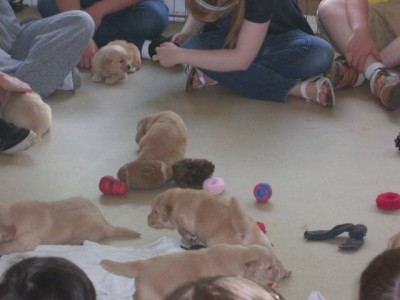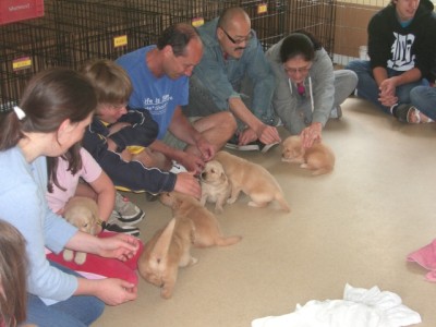 Visiting Hours We encourage those who have reserved a pup to visit weekly to watch the pups grow and to become more familiar with them. Our "visiting hours" are held most Saturday afternoons when there are pups to see. The following pictures will give an idea of what happens.