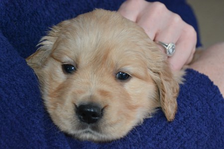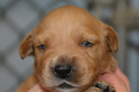 Ty is a mid-sized boy with a beautiful head and expression. His coat is dark gold, straight and easy-care. His nature is confident and outgoing - the perfect outlook on life. His pedigree contains some of the oldest Canadian and American lines. Ty has clearances for hip dysplasia, elbow dysplasia, detectable heart defects and eye cataracts. Birthday - January 9, 2018. Isla began contractions at about 2 am on January 9. The first pup was born at 2:36 am and the last at 7:40. Eight of the pups weighed close to 15 ounces at birth while the 9th weighed just 6 ounces. All were vigorous and nursed well. As of 3:30 pm on January 10, Isla and all 9 pups were doing well.