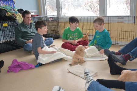 Visitors - February 17. The pups entertained a full house of visitors this week. All had a great time. Here are the pictures.