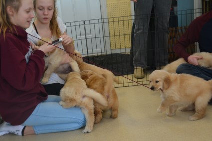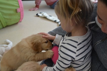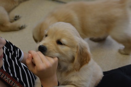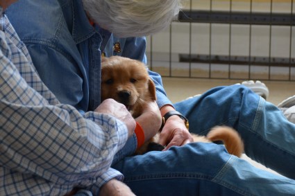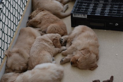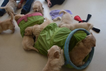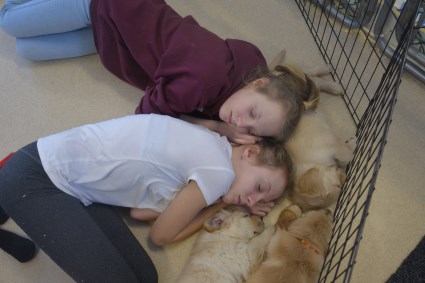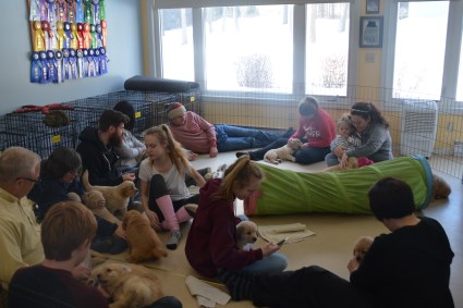 without enthusiasm. All is well. The weekly visiting times have been enjoyed by all and have helped with the pups' socialization. Here are a few pictures taken on January 7 and 8.