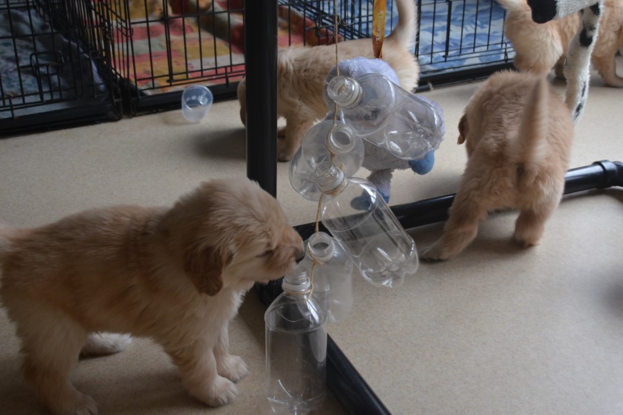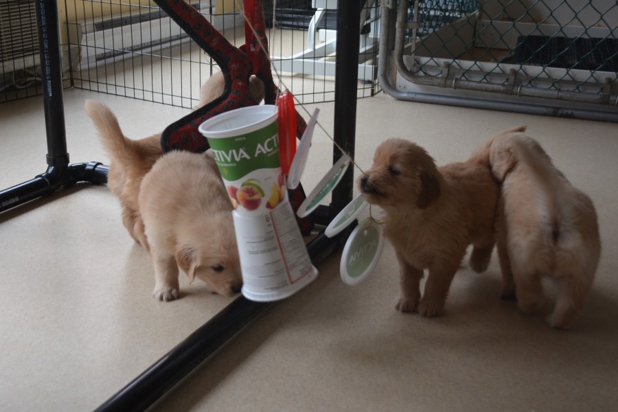 We set the activity centre up today. The pups went right to it and had a great time as these pictures and video show (click HERE for the video).