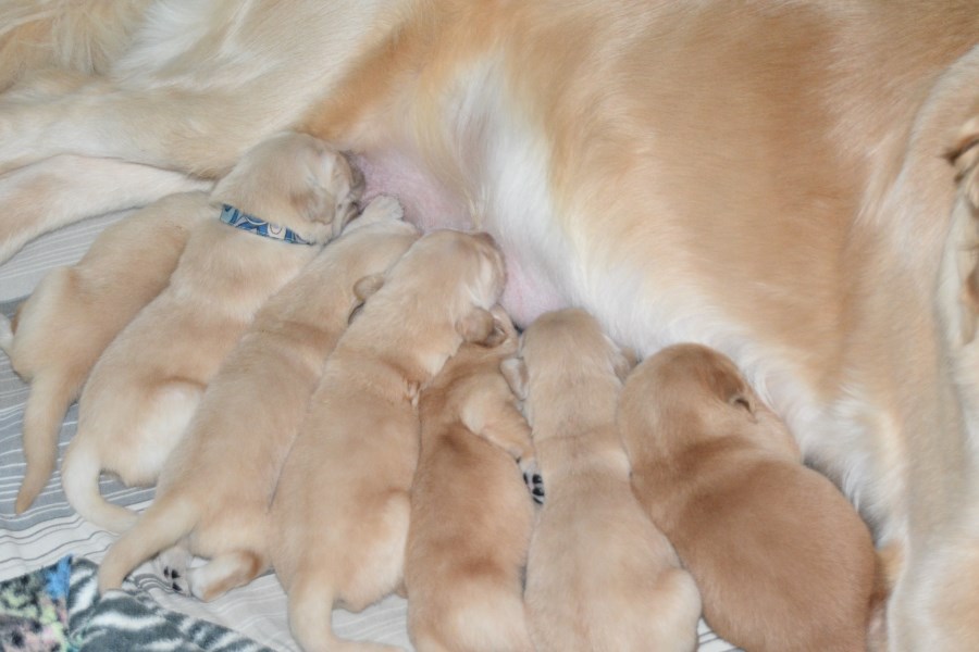 As usual, the pups soon adjusted to the new area. Millie will nurse them on a schedule and we will feed them solid food. The number of nursings will
