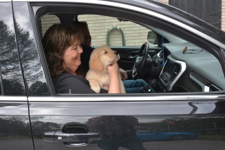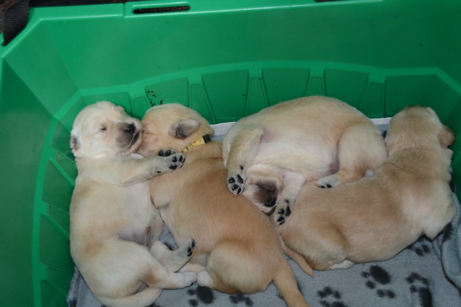 was cleaned and then a snooze. But soon many visitors arrived to attend the seminar and then take the pups to their new homes. The pups have
