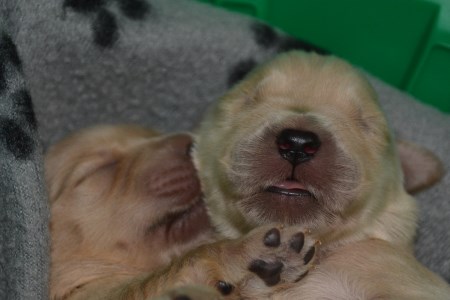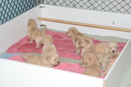 Crewe is a fairly big boy with a beautiful medium gold coat and excellent pigmentation. He won his show championship easily due to his wonderful structure and cheerful nature that are so obvious to all who meet him. His pedigree combines some of the good old lines from Canada and the U.S.A. He has all his clearances including an OFA Excellent rating on his hips. Crewe has clearances for hip dysplasia, elbow dysplasia, detectable heart defects and eye cataracts. Click HERE for details and for Crewe's pedigree. Birthday - November 10, 2017. Nora had a very easy and efficient delivery, producing 11 pups in just under 3 hours (5:50 am to 8:45 am). The birth weights ranged from 9 to 15.5 ounces. The pups were vigorous and nursed immediately. As of 1 pm Nora and her pups were doing well. The next 72 hours are important as Nora settles into motherhood and the pups organs begin to function.