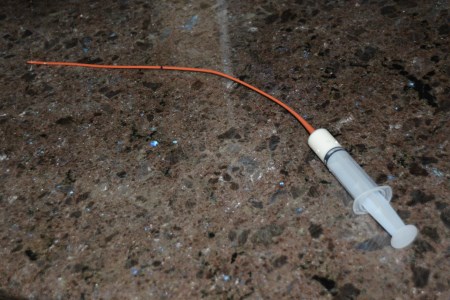 We have been supplementing the two smallest pups to be sure that they thrive. We are feeding a milk replacer by stomach tube. Both pups have responded well. We use the stomach tube to supplement as it is easier for the pups with less loss. We mark the tube to be sure that we insert it to the proper depth. We then slide the tube down into the stomach and inject the fluid.