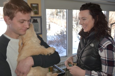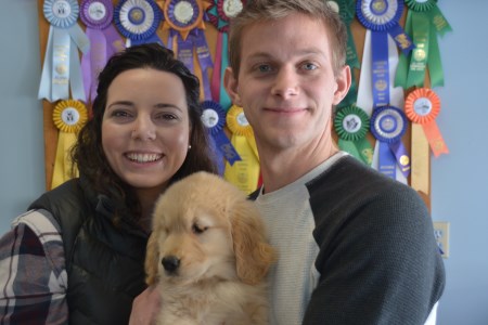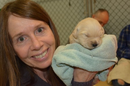Visitors - November 25, 2017. This was the first time the new owners could cuddle the pups. Here are a few of the many pictures taken.