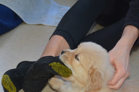 Visitors - December 8 and 9, 2017. Pups and visitors entertained each other for two hours each day. As is usual, the pups were active at the beginning then fell asleep. Everyone had a great time.