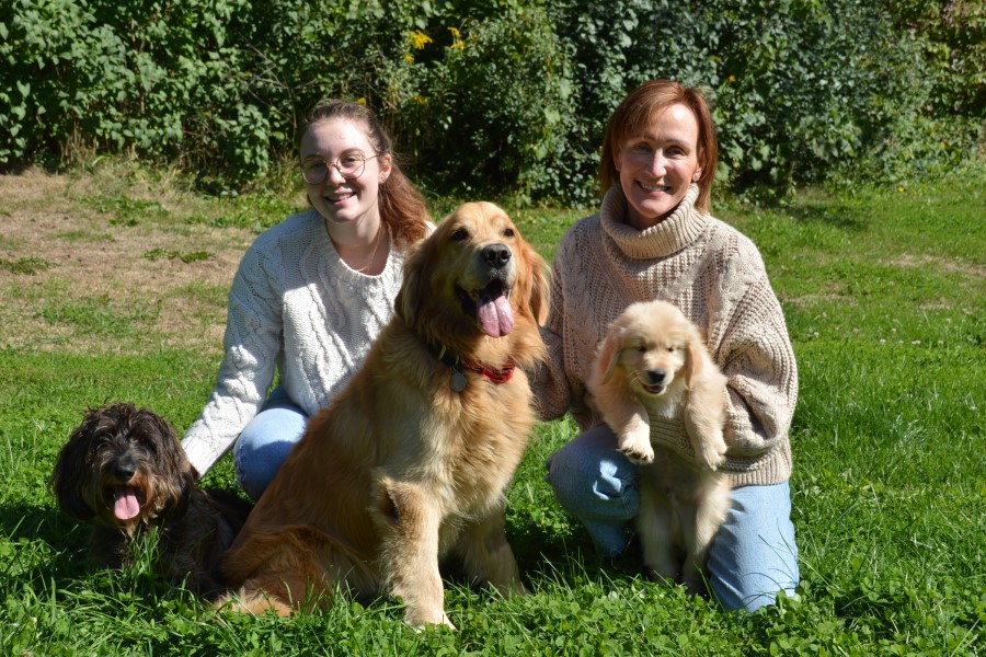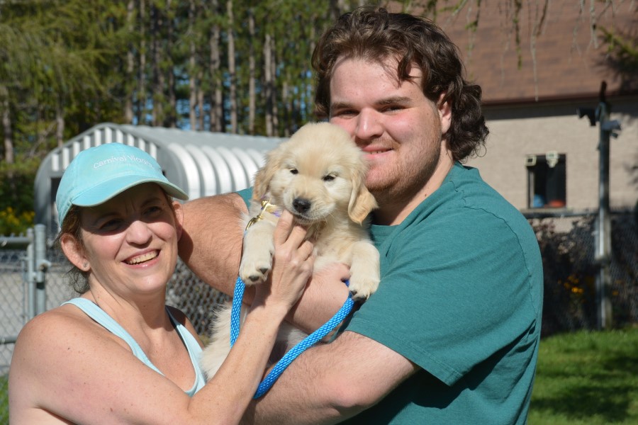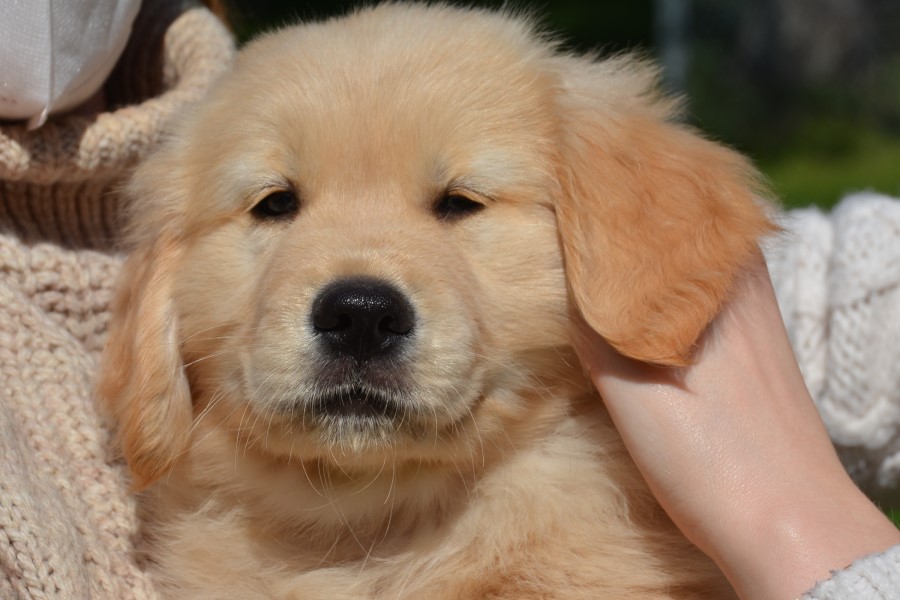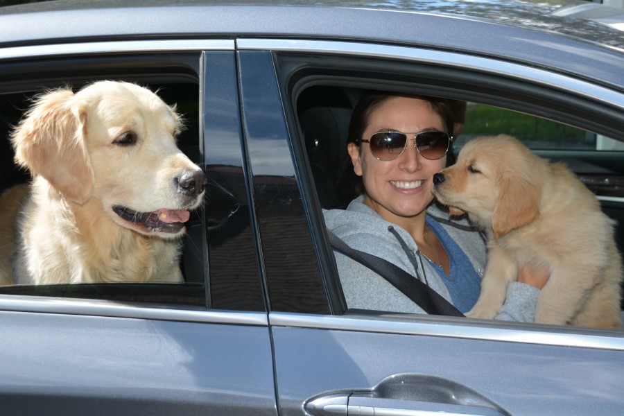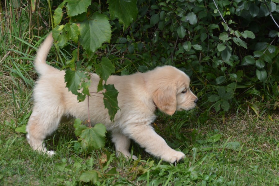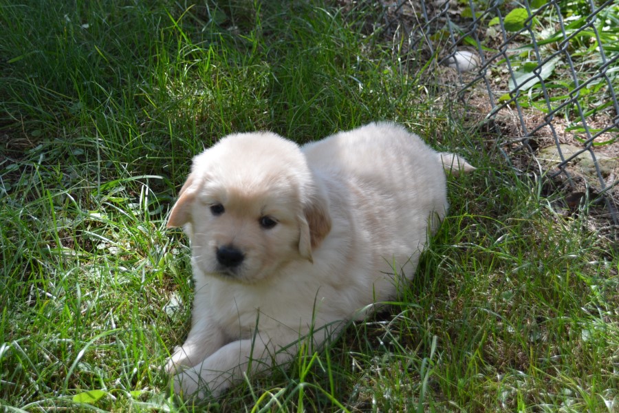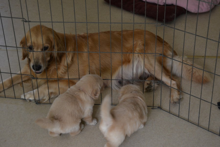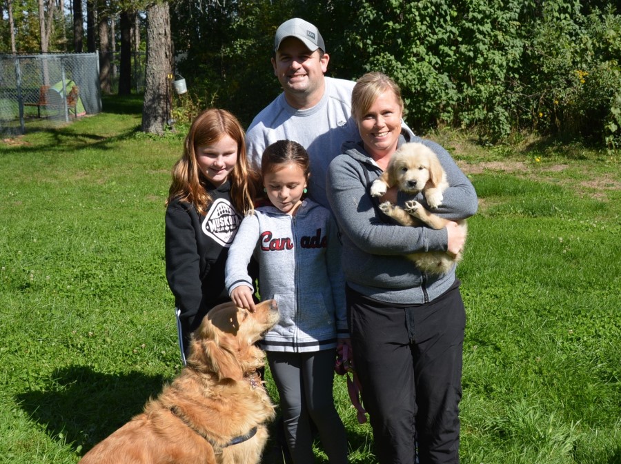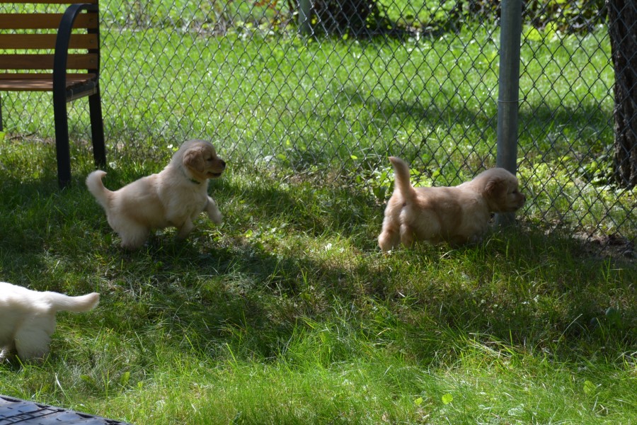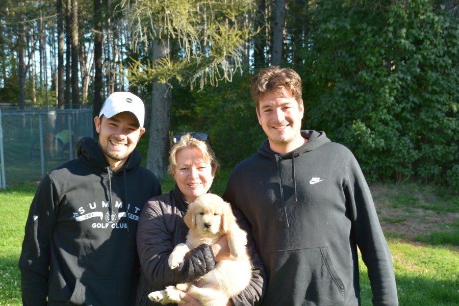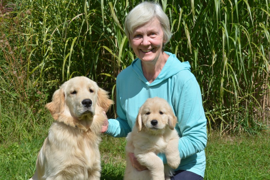 September 19 and 20 - Going home. It is always a bitter-sweet time for us when the pups leave for their new homes but even more so this time as this is our last litter. But we know that all the pups are going to people who will give them the love and care they need and deserve. Our thanks to yet another group of great owners. We have enjoyed meeting and getting to know them and we thank them for choosing Setherwood Goldens. Tartan (from his home in Cayuga) sent a picture and Tilda gave her final hugs.