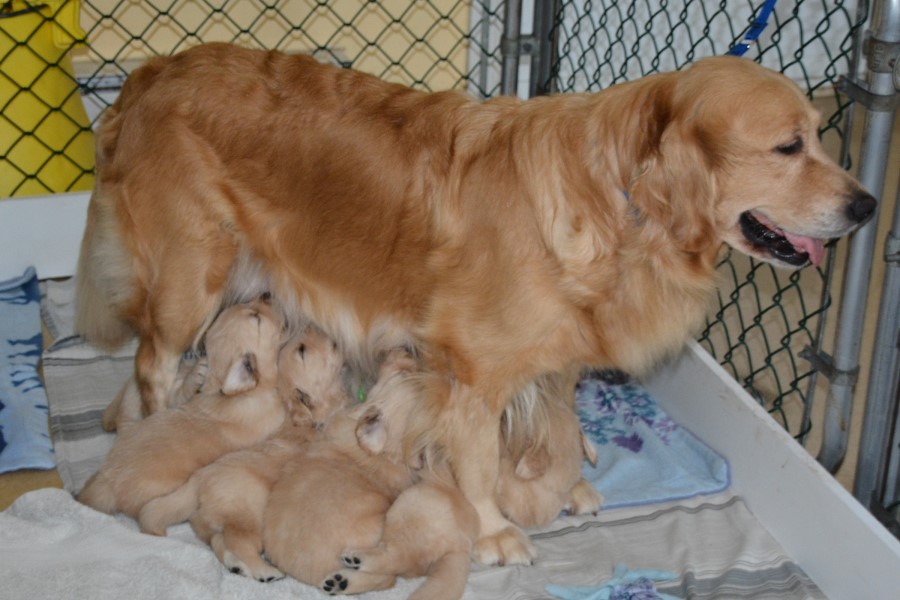 Update - July 28. Tilda and her pups are doing well. The pups have gained weight, Tilda's temperature is normal and she is eating and nursing well. All is as expected.