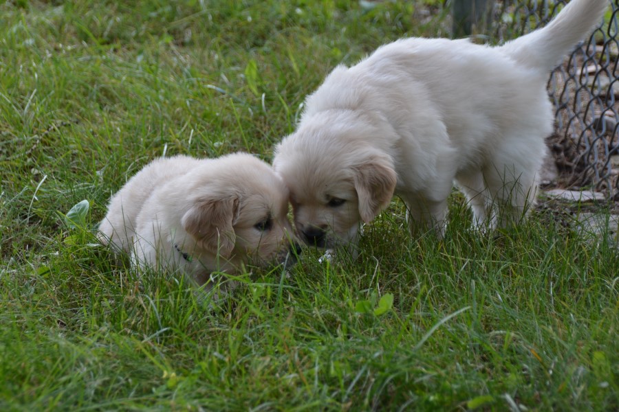 First time outside - August 30, 2020. The pups are just over 5 weeks old. They weigh about 6.5 pounds each. Tilda has been nursing them 3 times a day and we have been feeding them twice. Next week it will be 2 nursings and 2 feedings each day. They are doing very well. Today was their first time outside. They adjusted quickly and had a great time. Here are the pictures.