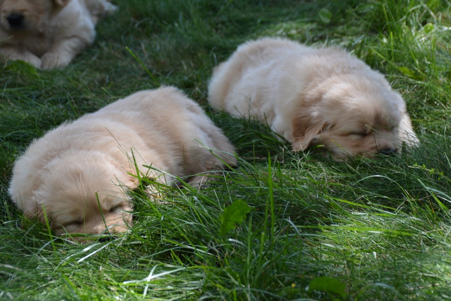 Update - September 12, 2020. The pups are 7 weeks old today. They celebrated by spending time outside as the weather was good (dry and warm). As usual they played, dug and finished asleep. Here are the pictures.